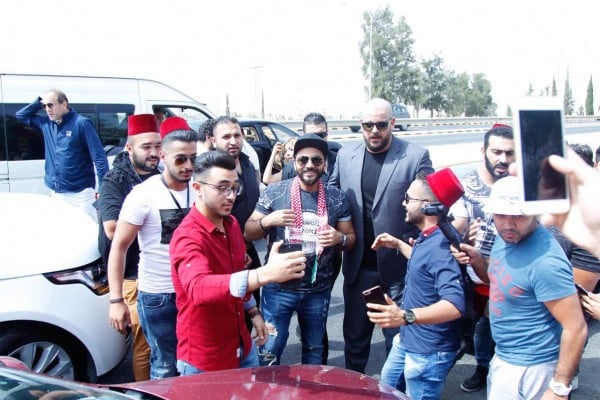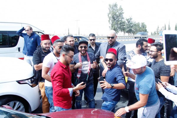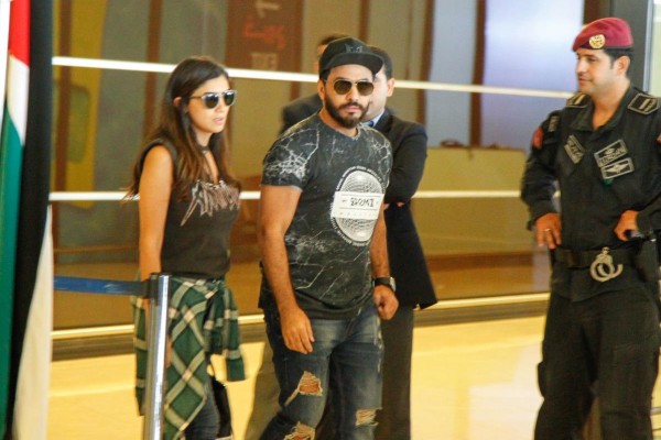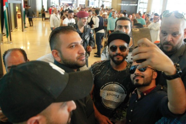 ومنذ البداية كان الجمهور على موعد مع لقاء فنانيهم في مطار الملكةعلياء الدولي الذي شهد حضور عدد كبير من المعجبين لاستقبال نجوم الفيلم وزين طريقالمطار بلوحات ترحيبية خاصة بتامر حسني و مي عمر و بقية النجوم .