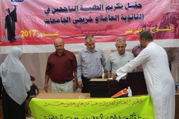 وذلك بحضور اولياء الامور وامهات واشقاء وشقيقات المتفوقين من العائلة حيث بلغ عدد المكرمين من طلبة التعليم العام 79 طالبا ومن الثانوية العامة ثمانية طلاب ومن خريجي الجامعات 11.