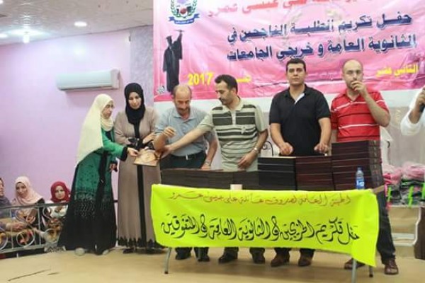 وتراوحت شهاداتهم من البكالوريوس الى الدكتوراه وفي نهاية الحفل تم توزيع الجوائز على جميع المكرمين.