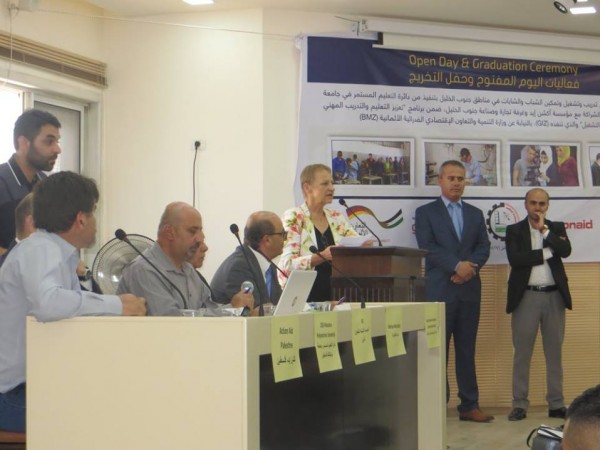 بحضور ومشاركة السيدة سابينا جيبوير والمهندس زبيدي حمايل (برنامج التعليم والتدريب المهني والتقني والتشغيل من التعاون الألماني - GIZ)، وبحضور واسع من سوق العمل ومؤسسات التدريب المهني في محافظة الخليل، بالإضافة إلى فريق المشروع وممثلي المؤسسات الشريكة، وخريجي الدورات التدريبية التي جرى تنفيذها.