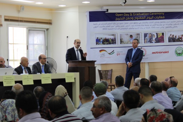 وهنّأ بدوره الخريجين متمنياً لهم خالص التوفيق والنجاح في حياتهم المهنية والشخصية، شاكراً كل من كان لهم دور فاعل في إنجاح المشروع وعلى رأسهم التعاون الألماني ووزارة التنمية الألمانية وما قدّمته من دعمٍ مادي ومعنوي ولوجستي لهذا المشروع.
