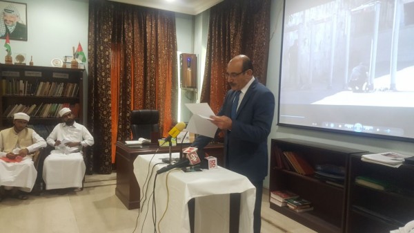 نظمت سفارة دولة فلسطين لدى جمهورية الهند مؤتمرا صحفيا بالأمس الأربعاء 26/07/2017، في مقرسفارة دولة فلسطين حول الإجراءات والممارسات والإنتهاكات الإسرائيلية في مدينة القدس، خاصة ضد المسجد الأقصى.