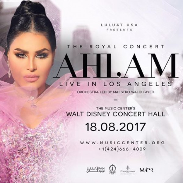 أحلام دعت جمهورها لحضور حفلها، حيث كتبت، على حسابها الخاص على "انستغرام": "كما عودتكم جمهوري بمسارح تليق بجمهوري.. في لوس أنجلوس أمريكا بتاريخ 18/ 8 / 2017 وكأول فنانة عربية على مسرح والت ديزني العريق انتظركم جمهوري وأعدكم بحفل ملكي من الطراز الأول، أحبكم جمهوري وانتظركم، الله لا يحرمني منكم ولا من محبتكم".