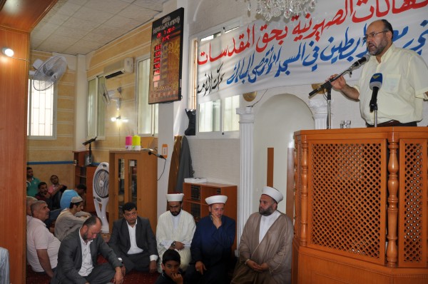المصلين، أمَّ المصلين أمين عام حركة الأمة الشيخ عبد الله جبري، الذي توجه بـ"التحية إلى أهلنا المرابطين في المسجد الأقصى، ونقول لهم: هنيئاً لكم، فأنتم تتحمّلون عنا وعن جميع العرب والمسلمين عبئ التصدي للمتطرفين والاحتلال، ذاك الاحتلال الإسرائيلي الذي لا يفهم إلا لغة القوة ولغة المقاومة، وعليه أن يفهم أن سلوكه العنصريّ تجاه المسجد الأقصى المبارك، والشعب الفلسطيني، لن يقابل إلا بردّ جهادي مسلّح، كما فعل الأبطال الثلاثة منذ أسبوعين".