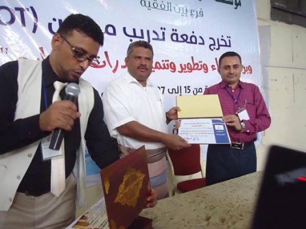 نظمت مؤسسة اليمن للتدريب والتأهيل بفرع بيت الفقية بمحافظة الحديدة حفلاً تكريمياً بمناسبة تخرج دفعة تدريب مدربين TOT دفعة " صناع الإرادة " والبرنامج التدريبي المجاني " بناء وتطوير وتنمية قدرات الشباب".