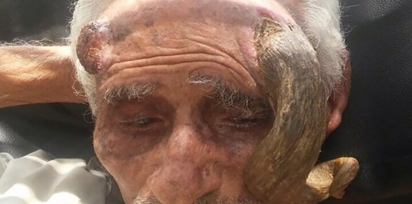 وعانى المسن اليمني من حالة تشوه نادرة إذ برز ما يشبه القرن من مقدمة رأسه.