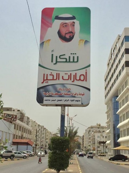 وقال رئيس حملة "شكراً مملكة الحزم" و "شكراً إمارات الخير"، فراس اليافعي رئيس مؤسسة (الحقيقة ) لإعلام : "يأتي رفع الستار عن لوحة شكراً إمارات الخير بصورة الشيخ خليفة بن زايد آل نهيان، (حفظة الله) تقديراً وعرفاناً للأشقاء في الإمارات العربية المتحدة لكل ما قدموه لبلادنا"، موضحاً أن "اللوحة جاءت على نفقة ورعاية قيادة وافراد المنطقة العسكرية الرابعة برعاية اللواء ركن فضل حسن أحمد .