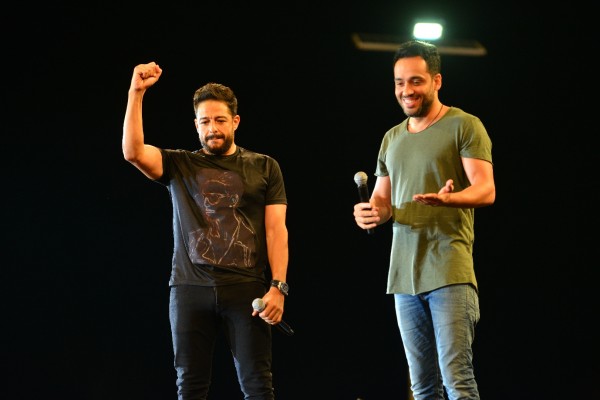 كما طالب حماقي المطرب والملحن رامي جمال للصعود على خشبة المسرح وقدما معا أغنيتي "وقت قريب" و "اوعديني" .. بعدها حرص رامي علي شكره وطالب الجمهور بمواصلة الاستمتاع بحفل نجمهم المفضل.