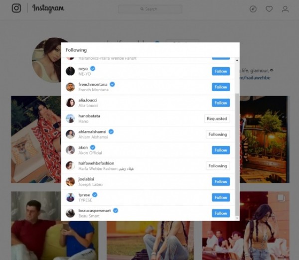 يظهر حساب النجمة اللبنانية هيفاء وهبي على تطبيق “انستغرام” أنها تتابع فنانة عربية واحدة من القائمة التي تشمل 13 حساباً فقط، على الرغم من انها متابعة من قبل أكثر من 4.5 مليون حساب.