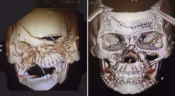 ونشر جراح مختص في طب العيون، صور التحول المذهل لجمجمة ووجه المرأة البالغة من العمر 25 عاماً، قبل وبعد العملية الجراحية التي خضعت لها، وذلك في أعقاب إصابتها بكسور في عدة أماكن من الجمجمة، وتعرض الفكين العلوي والسفلي لأضرار جسيمة، كما وجد الأطباء عينها اليسرى في الحجرة الأنفية.