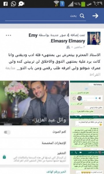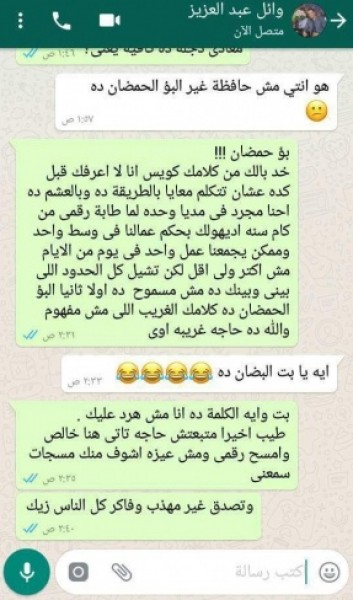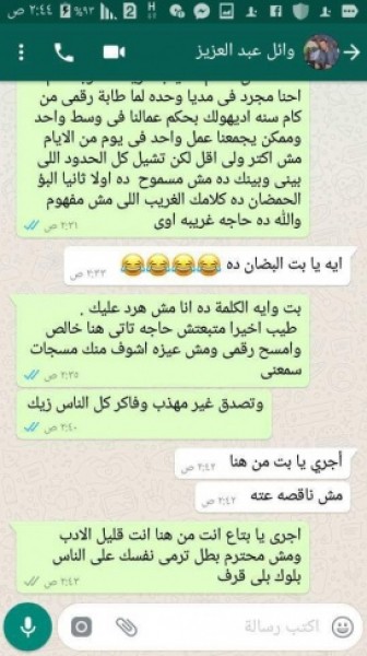 وأضافت أن إحدى صديقاتها نصحتها بعدم فضح الأمر خوفا من تعرض ياسمين عبد العزيز لها، ولكنها أصرت على نشر المحادثات بينها وبين وائل، وأنها لا تخشى أحد.