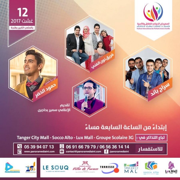 يستعد النجوم عمر ولين ومايا الصعيدي والفنانين ديمة ومحمد بشار للسفر إلى المملكة المغربية، لأحياء حفل فني في مدينة طنجة يوم السبت 12/8/2017 ضمن المهرجان الدولي للطفل والأسرة.