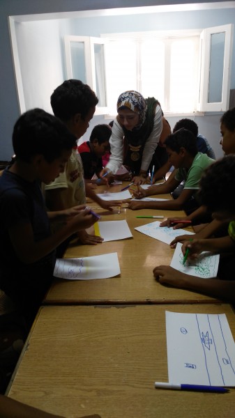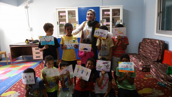 كما اقيمت ورشة فنون تشكيلية للرسم الحر بعنوان "المصيف" وسبقها حوار مفتوح يعبر فيه الطفل عن مظاهر ومفردات البحر المصيف والشواطئ والرمال الورشة تمت تحت اشراف الفنانة كريمة الديب باستخدام ألوان الفلوماستر والخشب واوراق الكانسون.