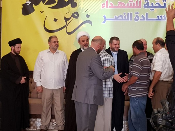 شارك وفد من حركة حماس برآسه المسؤول السياسي للحركة في منطقة صيدا ومخيماتها الأستاذ أيمن شناعة، وذلك يوم السبت 12/8/2017، بحفل الاستقبال الذي أقامه حزب الله في ذكرى الانتصار عام 2006 في قاعة الشيخ قبلان في حارة صيدا.
