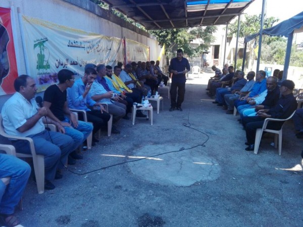 وقدم وفد من جبهة التحرير الفلسطينية التعازي والتبريكات بشهيدي المقاومة لطفي علي العلي ومروان احمد البردان في المساكن الشعبية