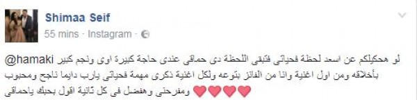 وكتبت شيماء تعليقًا على الفيديو قائلة «لو هحكيلكم عن أسعد لحظة فحياتي فتبقى اللحظة دي حماقي عندي حاجة كبيرة أوي ونجم كبير بأخلاقه ومن أول أغنية وأنا من الفانز بتوعه ولكل أغنية ذكرى مهمة فحياتي يا رب دايما ناجح ومحبوب ومفرحني وهفضل في كل ثانية أقول بحبك يا حماقي».