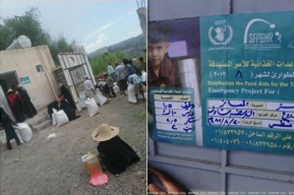 دشن مشروع التغذية المدرسية والاغاثة الانسانية صرف المساعدات الغذائية بالمديريات المستهدفة بمحافظة تعز ضمن مشروع الطوارئ رقم (201068) خطة شهر اغسطس 2017م.