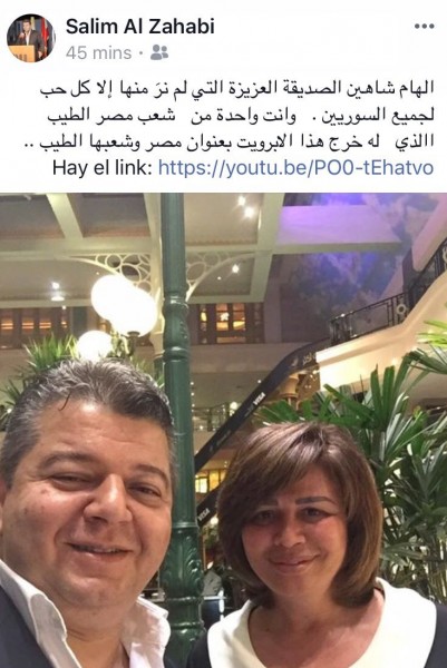 ونشر سليم صورة تجمعه بالفنانة الكبيرة خلال زيارته للقاهرة وكتب سليم معلقا على الصورة علي حسابه الخاص بموقع التواصل الاجتماعي "فيس بوك" قائلا "الهام شاهين الصديقة العزيز التي لم نرى منها الا كل حب لجميع السوريين ..أنت واحدة من شعب مصر الطيب الذي خرج له هذا الأوبريت .. مصر وشعبها الطيب ".