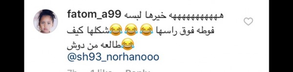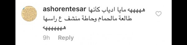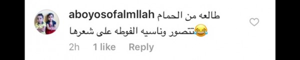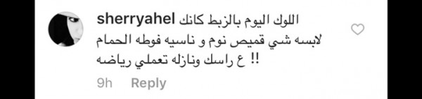وجاءت بعض التعليقات كالتالي: "شكلك بيفكرني بالشغالة الإثيوبية اللي عندنا.. طالعة من الحمام تتصور وناسية الفوطة على شعرها.. كأنك لابسة قميص نوم وناسية فوطة الحمام على راسك ونازلة تلعبي رياضة".
