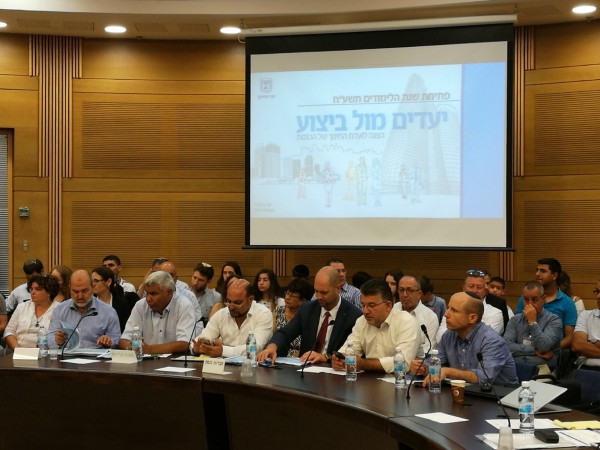 وكانت لجنة التربية البرلمانية قد عقدت يوم امس جلسة خاصة من أجل بحث الاستعدادات والتحضيرات للسنة الدراسية القريبة، بمشاركة وزير المعارف، نفتالي بينط، ومدير عام الوزارة، بالإضافة إلى نواب المشتركة د. يوسف جبارين، مسعود غنايم، د. احمد طيبي، عبد الحكيم حاج يحيى وسعيد الخرومي. وقد طرح النواب العرب قضايا التعليم العربي والتمييز الذي تعانيه المدارس العربية من ناحية الميزانيات والموارد المادية ومضامين التعليم.
