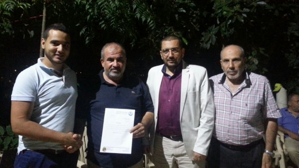 كما رافق الوفد مندوب الرابطة الإسلامية لطلبة فلسطين حيث قدم شهادة شكر وتقدير للسراج تعبيراً عن دعمه في إنجاح احتفال الرابطة بتخريج الناجحين في الشهادات الرسمية الذي أقيم في جامعة AUL جدرا.