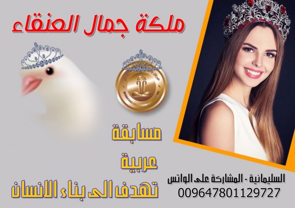 انطلقت أمس (مسابقة ملكة جمال العنقاء) من السليمانية (منظمة كار) مديرتها الناشطة آلة كمال لتحلق في سماء الوطن العربي لتعود مرة اخرى الى مدينة الجمال (السليمانية) لتقيم كافة فعالياتها حتى نهاية شهر 12 كانون الأول من هذا العام 2017 وتم الاتفاق مع جهات عديدة وشخصيات مهمة من اجل انجاح هذه التجربة الجمالية الانسانية وقال الاديب محمد رشيد مؤسس الجائزة :- لقد توصل فريقنا المتواجد في القاهرة من خلال الموسيقار نصير شمه واستراليا من خلال الكاتب متي كلو وهولندا من خلال الكاتب جاسم المطير والبروفيسور د. تيسير الالوسي والكاتب نهاد القاضي وفي السليمانية الناشطة خانم لطيف و اللجنة العليا في العراق الى امتيازات هذه الجائزة هي :- (1)تمنح (ملكة العنقاء) تاج العنقاء الذهبية ومكافأة قيمتها (5) مليون دينار عراقي ولقب (سفيرة التسامح واللاعنف) لعام 2018(2) تمنح (أميرة العنقاء الأولى) قلادة العنقاء الذهبية ومكافأة (3) مليون دينار عراقي ولقب ( سفيرة اتفاقية حقوق الطفل) لعام 2018 (3) تمنح (أميرة العنقاء الثانية) ميدالية العنقاء الذهبية ومكافأة (2) مليون دينار عراقي ولقب ( سفيرة مرضى التوحد ) لعام 2018 (4) تمنح (أميرة العنقاء الثالثة) ميدالية العنقاء الذهبية ومكافأة (2) مليون دينار عراقي ولقب (سفيرة مكافحة المخدرات) لعام 2018 (5) تتكون لجنة التحكيم من نجوم الشخصيات العربية الثقافية والفنية والإعلامية والمجتمع المدني وحقوق الإنسان (6) يخصص جزء من ريع العائدات لـ(منظمة كار) في السليمانية تمنح لذوي الاحتياجات الخاصة .