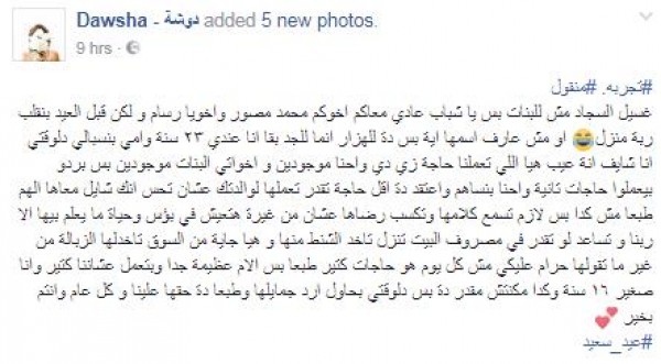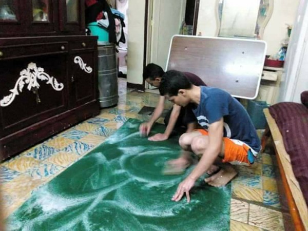 تداول مستخدمو موقع التواصل الاجتماعي "فيس بوك" مجموعة من صور لشابين يساعدان والدتهما قبل قدوم العيد بتنظيف السجاد وغسله.