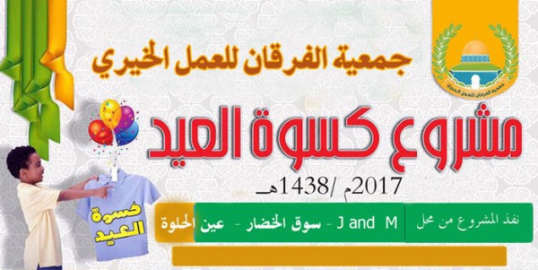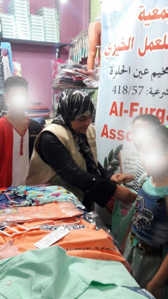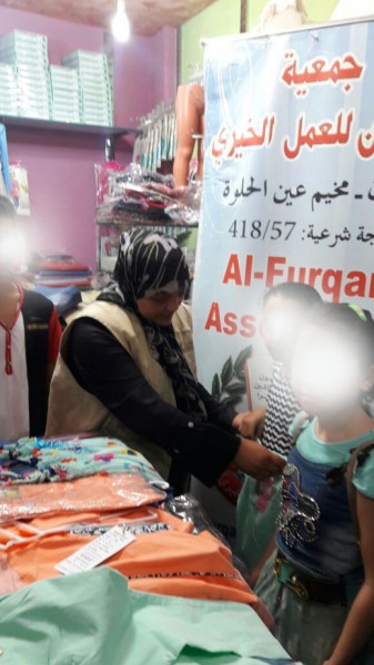 نفذت جمعية الفرقان للعمل الخيري الجزء الأول من مشاريع عيد الأضحى لهذا العام 1438هـ /2018م وهو كسوة العيد تحت شعار" فرحة العيد بثوب جديد" والممول من فاعل خير لأيتام نازحين سوريين في مخيم عين الحلوة.