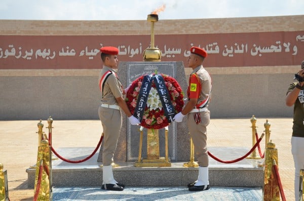 قائد الجيش الثانى ومحافظ الاسماعيلية يضعون الزهور على النصب التذكارى لشهداء الجيش