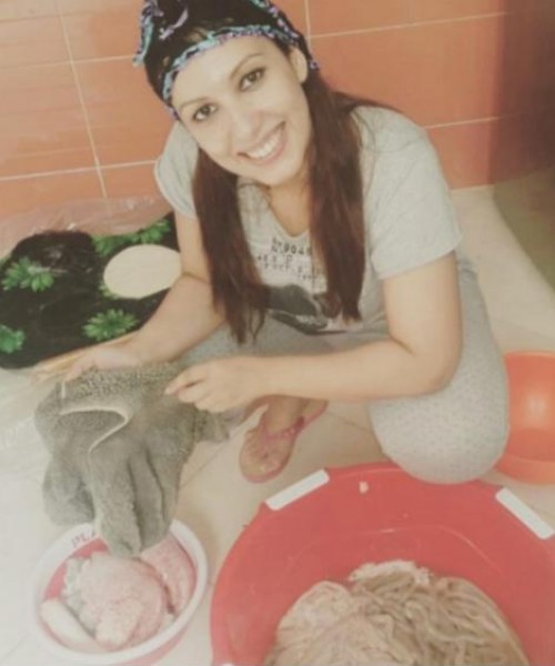 نجمة مغربية تفاجئ جمهورها بتنظيف كرشة الذبيحة