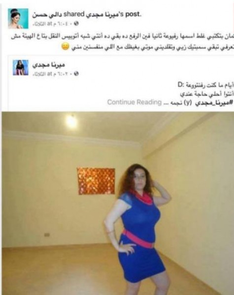 وكتبت دالي: "وكمان بتكتبي غلط اسمها رفيوعة ثانيا فين الرفع ده بقى ده أنتي شبه أتوبيس النقل بتاع الهيئة، مش هتعرفي تبقي سمبتيك زيي وتقلديني، موتي بغيظك مع اللي منفسنين مني".