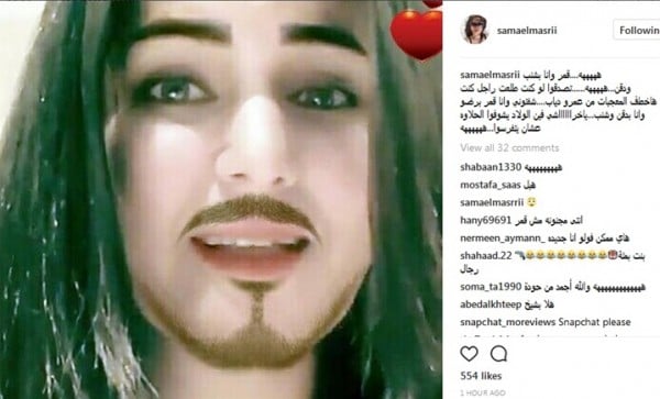 داعبت الفنانة الاستعراضية سما المصرى متابعيها بصورة جديدة، اليوم، عبر حسابها على موقع الصور والفيديوهات الشهير "إنستجرام"، وظهرت في الصورة المعدلة بشنب وذقن ومظهر رجالى.