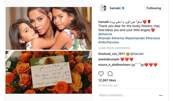 حرص المطرب محمد حماقي، على التوجه بالشكر للفنانة شيرين عبد الوهاب، بعدما أرسلت له باقة ورد كهدية بمناسبة اختياره في لجنة تحكيم "ذا فويس".