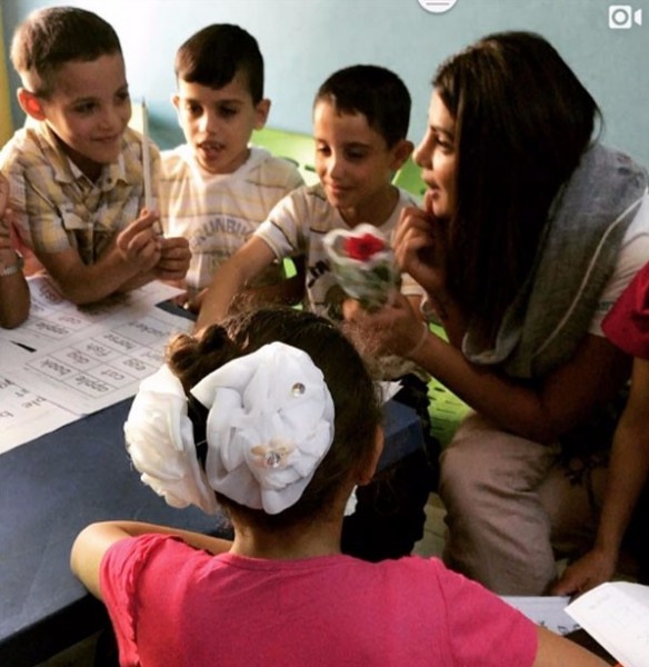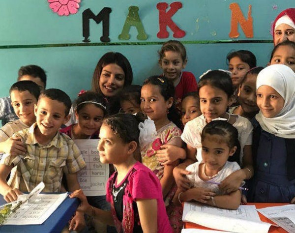 الممثلة حاليا في الأردن للقاء وزيارة مخيمات الإيواء للأطفال اللاجئين الذين تأثروا بالأزمة السورية. وقد التقت بريانكا بالأطفال اللاجئين الي جانب عدد من المتطوعين الذين أخذوا زمام المبادرة لتثقيفهم.