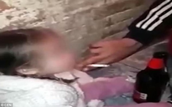 فيديو مُروع لوالدان يجبران طفلتهما على تدخين الحشيشة وشرب الخمر