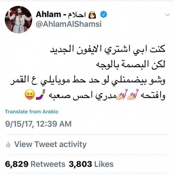 وغرّدت:"كنت أبي اشتري الايفون الجديد لكن البصمة بالوجه. وشو بيضمنلي لو حد حط موبايلي عالقمر وافتحه.. مدري احس صعبة".