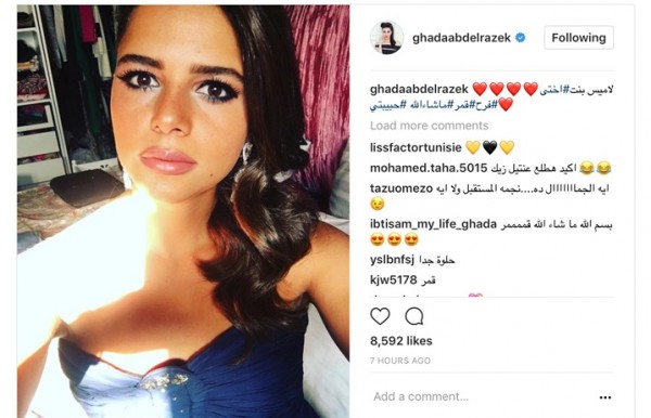 وعلقت "غادة"، على الصورة، عبر صفحتها الشخصية على موقع "إنستجرام"، قائلة: "لاميس بنت أختي فرح.. قمر ما شاء الله"، وتفاعل الجمهور مع الصورة بشكل كبير، معبرين عن إعجابهم بجمال وبراءة ملامحها.