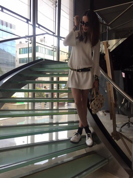 الحفاوة التي قوبلت بها العارضة من قِبل وزارة السياحة والشركة المستضيفة انعكست إيجابياً على صفحتها بفيسبوك، فنشرت صوراً لها تبدو بها مستمتعةً، على ما يبدو، برحلتها المجانية، منها صورة وهي ترتدي زياً عربياً ذكوريّاً وتحتضن طفلاً صغيراً، وأخرى وهي تُشهر سيفاً وتقول إنها وقعت في حبه وسوّف تأخذه معها إلى ميلانو.
