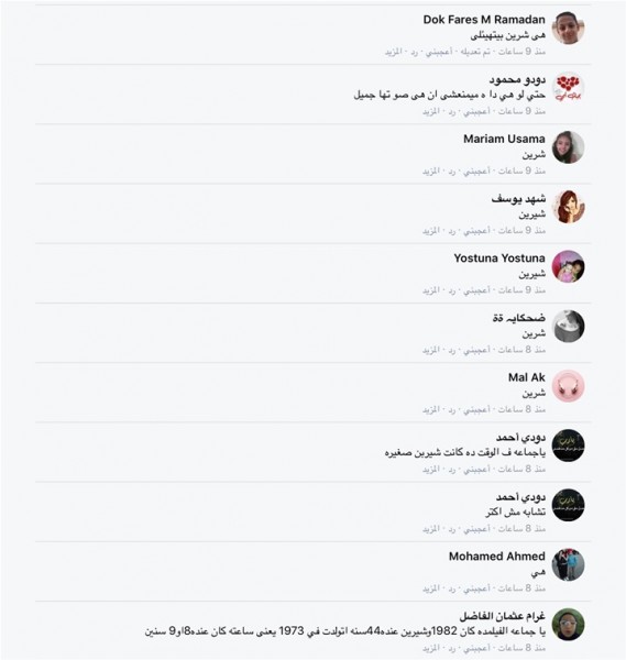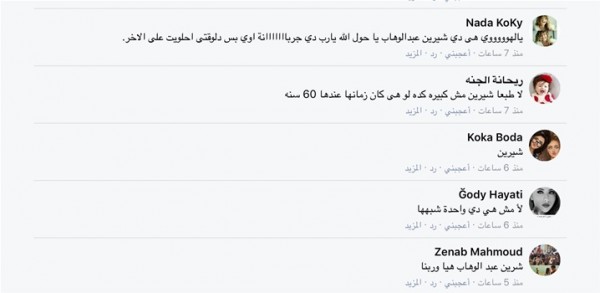 وجاءت بعض تعليقات الجمهور على الصورة كالتالي: "طلعتي كبيرة يا شيرين وإحنا مش واخدين بالنا.. إيه ده كان شكلك عنيف قوي.. هو انتي من جيل نادية الجندي".