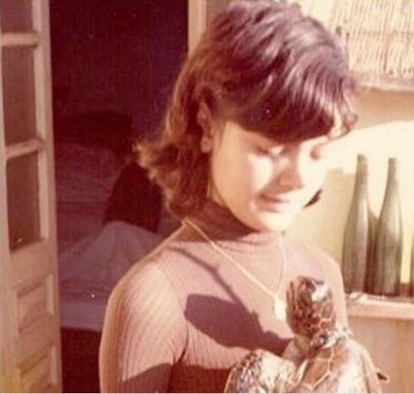 وقالت في التعليق على الصورة: "من صغري حبيتن...هني كائنات بريئة ما بتعرف تكذب...طفل بحياتو ما بيكبر ناطر عاطفه وبس...كيف ما بدي حبن؟! وهيدي الصورة من أحلى ذكريات الطفولة وأسعد اللحظات، سلحفاة أهداني ياها والدي".