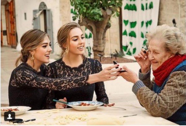 وظهرت الشابتان، في إحدى لقطات الإعلان المصوّر، وهما تبيعان المعكرونة في أحد أحياء بلدة باري الشعبية جنوب إيطاليا.