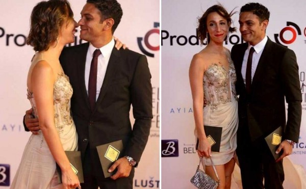 والتقطت الكاميرات صورة رومانسية لآسر برفقة زوجته على السجادة الحمراء، وظهرا معا وهما ينظران لبعضهما ويحملان بطاقات دعوة المهرجان.