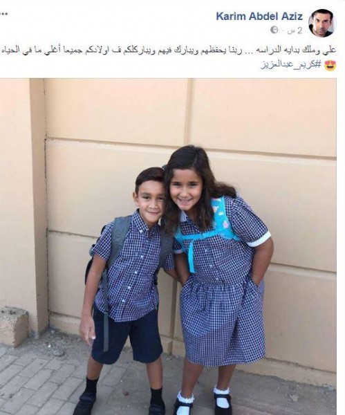 نشر الفنان كريم عبد العزيز صورة نجليه "علي، وملك" على صفحته الخاصة بموقع التواصل الاجتماعي "فيسبوك"، يرتديان فيها الزي المدرسي، موضحًا أن تلك الصورة تم التقاطها بمناسبة بدء العام الدراسي الجديد.