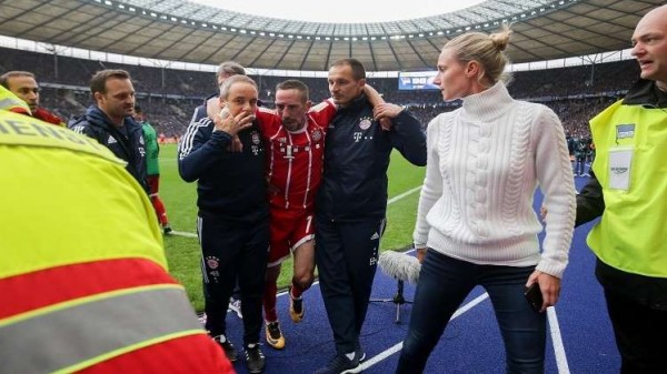 يواجه الفرنسي فرانك ريبيري لاعب وسط بايرن ميونيخ الألماني احتمال الغياب لمدة ثلاثة أشهر بسبب تعرضه إلى تمزق في أحد أربطة الركبة، حسب ما ذكرت شبكة سكاي الاثنين. وخرج ريبيري في الدقيقة 62 من المباراة التي تعادل فيها بايرن مع هرتا برلين 2-2 الأحد برغم تقدمه 2-0 في المرحلة السابعة من الدوري الالماني، بسبب اصابة قوية تعرض لها دون احتكاك بأحد.