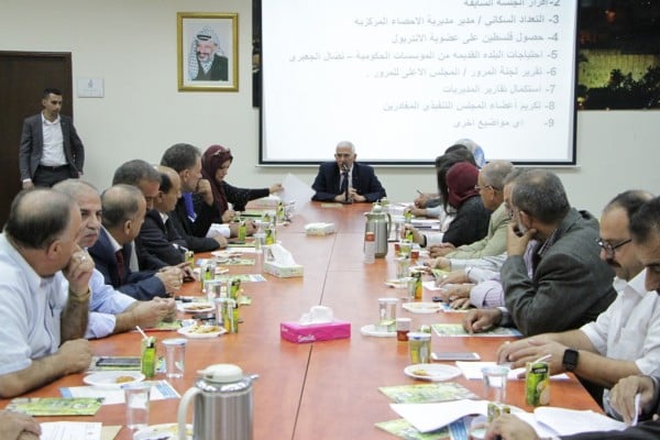 بداية الاجتماع قال حميد : " اشكر الجميع على الجهود المميزة في مديرياتكم وعلى الانجازات التي تحققونها على الارض في كافة ارجاء المحافظة وأحييكم باسم الرئيس ودولة رئيس الوزراء ونهنئ انفسنا والشعب الفلسطيني بالمصالحة الوطنية وبإزالة غيمة الانقسام عن شعبنا الفلسطيني ونحن نحقق الكثير من الانجازات بفعل الدبلوماسية الهادئة للقيادة الفلسطينية ولا بد من انجاح جهود المصالحة والتأكد من نجاحها ايضا " .