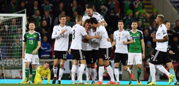 لحق المنتخب الألماني بقافلة المتأهلين إلى النهائيات اثر فوزه 3-1 على مضيفه منتخب أيرلندا الشمالية، الخميس في الجولة التاسعة قبل الأخيرة من مباريات المجموعة الثالثة بالتصفيات، ليتأهل بالعلامة الكاملة، حيث حصد 27 نقطة.