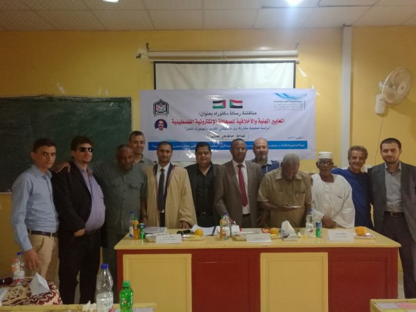 وقال: "إن لجنة الحكم والمناقشة أوصت بطباعة الرسالة في كتاب ليكون مرجعاً ومنهجاً علمياً لطلبة الإعلام في الجامعات، لاسيما وأنه يتناول موضوع هام ومميز حول المعايير المنهية والأخلاقية للصحافة الإلكترونية الفلسطينية".
