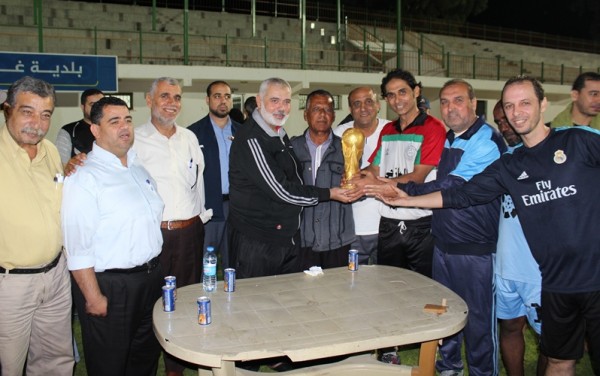 وفي الختام قدم فريق قدامى الوسطى درعاً تكريمياً تسلمه د. اسماعيل هنية, وقام الحضور بتتويج قدامى غزة بكأس الوحدة الوطنية.