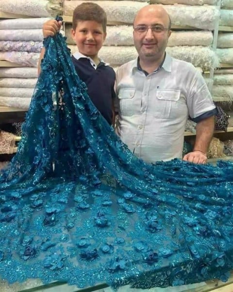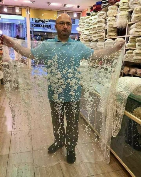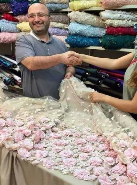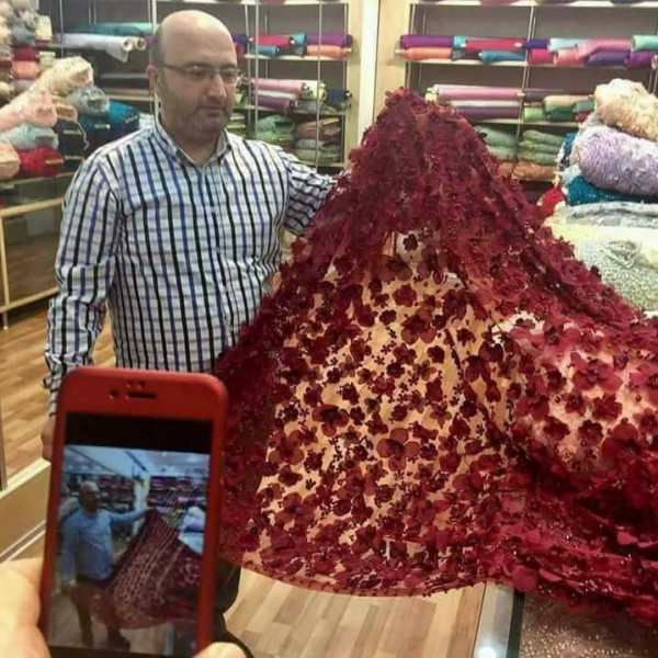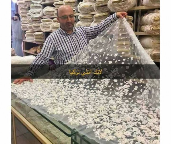 وأظهرت الصور صاحب المحل الذي راح يعرض الكثير من الأقمشة المذهلة والرائعة والتي يتراوح سعر المتر من 20 لـ 400 دولار، مما أثار إعجاب الكثير من الفتيات وتمنوا شراء تلك الأقمشة.