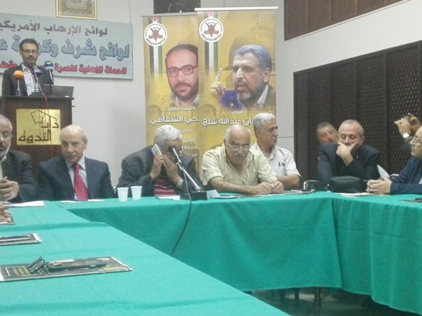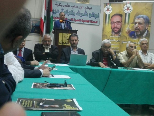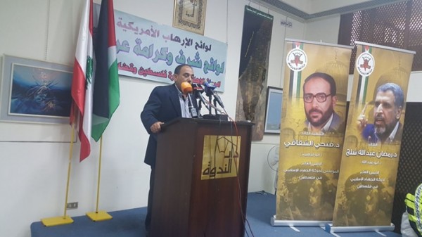 وجاء في رسالة الدكتور زياد حافظ (امين عام المؤتمر القومي العربي) نلتقي اليوم للتعبير عن تضامننا مع المقاوم الكبير الأخ رمضان عبد الله شلّح الامين العام لحركة الجهاد الاسلامي وإخوانه اللذين استهدفهم التحالف الأمريكي الصهيوني وبعض الحكام العرب في وضعهم على قائمة الإرهاب. كما أننا نلتقي لرفض ذلك الإجراء شكلاً ومضموناً غير أن له دلالات عدة.